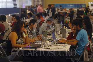 GUADALAJARA, JALISCO, 22JULIO2015.- Hoy en expo Guadalajara comienza Jalisco Campus Party, el evento de innovación tecnológica que busca consolidarse como el mayor escaparate de creatividad en el orbe, mismo que permanecerá en Guadalajara hasta 2018. Este año se prevé la asistencia de 15 mil jóvenes, cinco mil más que la edición de 2014, lo que coloca a Jalisco como la sede más grande en el mundo en su tipo. FOTO: FERNANDO CARRANZA GARCIA / CUARTOSCURO.COM