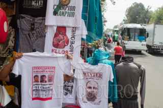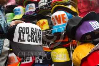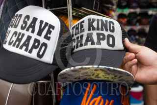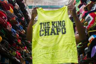 MÉXICO, D.F., 23JULIO2015.- Comerciantes del barrio Tepito ofertan playeras, sudaderas y gorras alusivas a Joaquín Loera "El Chapo" Guzmán, el capo de Sinaloa, quien fue noticia este mes tras su fuga del penal del Altiplano, los vendedores reportan una gran demanda de este tipo de productos que van de los cincuentas pesos hasta los $150. FOTO: MOISÉS PABLO /CUARTOSCURO.COM