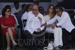 ALVARADO, VERACRUZ, 23JULIO2015.- Arely Gómez, Procuradora de la República saludo a Carlos Romero Deschamps, Líder Petrolero durante la graduación de 153 Cadetes de la Heroica Escuela Naval Militar. FOTO: ENRIQUE ORDÓÑEZ /CUARTOSCURO.COM