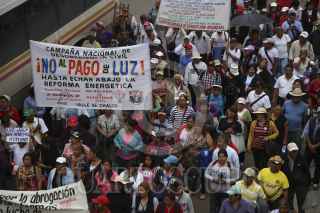 MÉXICO, D.F., 23JULIO2015.- Integrantes Asamblea Nacional de Usuarios de Energía Eléctrica (ANUEE) y ex electricistas del SME, marcharon de la PROFECO hacia las instalaciones de la CFE y SEGOB, para exigir un cese a las altas tarifas de luz y una renacionalización de la industria eléctrica. FOTO: SAÚL LÓPEZ /CUARTOSCURO.COM