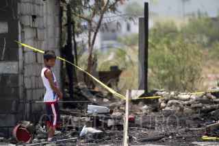 SANTA CATARINA, NUEVO LEÓN, 23JULIO2015.- Un incendio provocado en un tejaban localizado en las orillas del arroyo del Obispo consumió al menos a 10 viviendas más de cartón y madera, sin que se reporten personas lesionadas. En el asentamiento irregular viven al rededor de 150 familias en pobreza extrema. FOTO: GABRIELA PÉREZ MONTIEL / CUARTOSCURO.COM