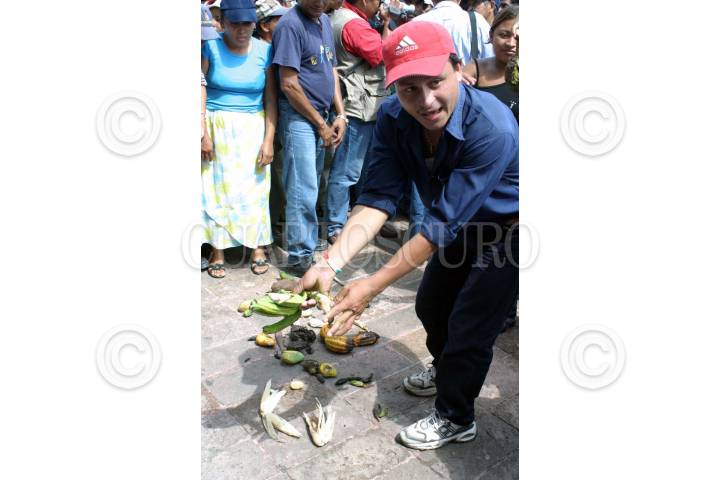 VILLAHERMOSA, TABASCO, 17MAYO2006.- Habitantes de la ranchería Huimango, Cunducan muestran algunos de los frutos de la zona que son afectados desde la explosión del gasoductos de Pemex hace un año, la fruta como el cacao, guanabana y mazorcas de maiz nacen secas en las tierras de cultivo tabasqueño. FOTO: Marco Polo Guzmán/CUARTOSCURO.COM