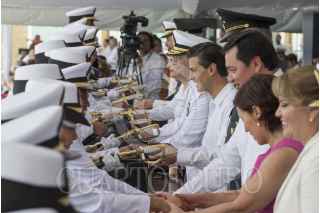 ALVARADO, VERACRUZ, 23JULIO2015.- Con la creación de la Universidad Naval, la Armada de México se suma al objetivo primordial de la Reforma Educativa: brindar educación de calidad a los jóvenes de México, afirmó el Presidente de la República, Enrique Peña Nieto, al encabezar en este municipio la ceremonia de graduación de la generación 2010-2015 de la Heroica Escuela Naval Militar. FOTO: PRESIDENCIA /CUARTOSCURO.COM