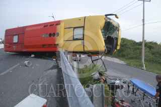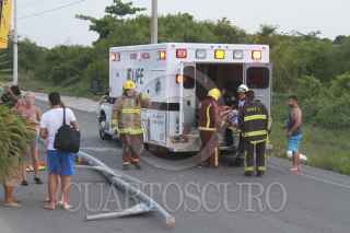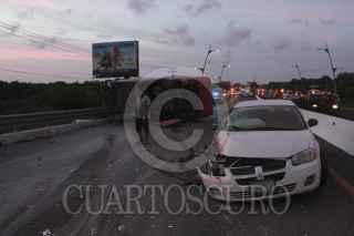 CANCUN, QUINTANA ROO, 25JULIO2015.- Un aparatoso accidente se registró esta tarde entre un camión de turismo y un auto particular, el saldo fue de 21 lesionados trasladados a diferentes hospitales de la ciudad. FOTO: ELIZABETH RUIZ /CUARTOSCURO.COM