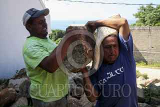 ACAPULCO, GUERRERO, 26JULIO2015.- Campesinos de la zona rural de Acapulco provenientes de comunidades como Sabanilla, Dos Arroyos y Tasajeras, han tenido que migrar a la ciudad y dedicarse a labores urbanas como la construcción, debido a la falta de apoyo al campo. Explicaron que la canícula que inició hace 15 días, ha provocado que los sembradíos se sequen, por lo que no habrá cosecha. Llegan a cobrar hasta mil 200 pesos a la semana, lo que apenas satisface sus necesidades, pero lo aceptan debido a la crisis y al hambre que padecen sus familias. FOTO: BERNANDINO HERNANDEZ /CUARTOSCURO.COM