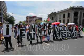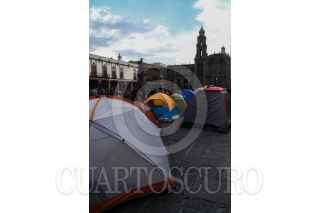 MÉXICO, D.F. 27JULIO2015.- Jóvenes estudiantes integrantes del Movimiento de Alumnos Excluidos de la Educación Superior, realizaron una marcha hacia las instalaciones de la Secretaria de Educación Pública rechazando el número de matrículas que se destinan para la Educación Superior. Al llegar a las instalaciones y no recibir respuesta de parte de las autoridades se decidieron por realizar un plantón, mientras los estudiantes armaban sus casas de campaña, la Secretaria de seguridad Pública desplegó a un gran número de granaderos para evitar y no permitir la libre manifestación de los estudiantes, quienes en cadena humana impidieron su paso. FOTO: ISABEL MATEOS /CUARTOSCURO.COM