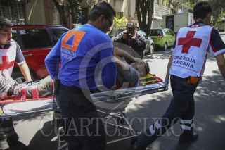 MÉXICO, D.F., 28JULIO2015.- Personal de la Cruz Roja y Protección Civil, auxiliaron a un hombre que recibió una descarga eléctrica y resulto con quemaduras cuando soldaba al interior del numero 261 en la colonia Roma Norte. FOTO: SAUL LÓPEZ /CUARTOSCURO.COM