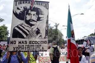 MÉXICO, D.F., 28JULIO2015.- Integrantes en defensa de la liberación militar de Xochicuautla y Ostula marcharon de la Dstela de Luz rumbo a la Secretaria de Gobernacion. FOTO: ENRIQUE ORDÓÑEZ CUARTOSCURO.COM