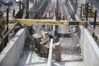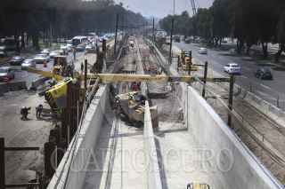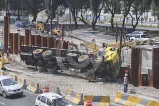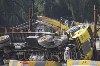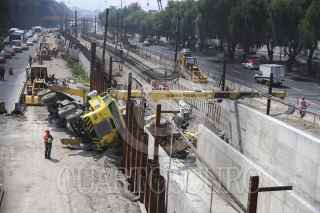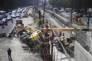 MÉXICO, D.F., 29JULIO2015.- Una volcadura de una pluma industrial y un traxcabo se volcaron al interior de las vías del metro férreo entre las estaciones Peñon Viejo y Guelatao de la linea A donde se realiza la renivelación de las vías del metro. FOTO: SAÚL LÓPEZ