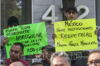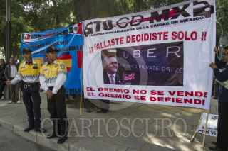 MÉXICO, D.F., 29JULIO2015.- Taxistas se manifestaron en la Glorieta de la Diana Cazadora en contra del servicio de transporte privado Uber y Cabify. FOTO: ISAAC ESQUIVEL /CUARTOSCURO.COM