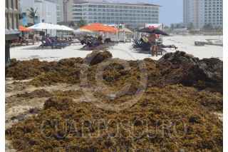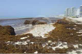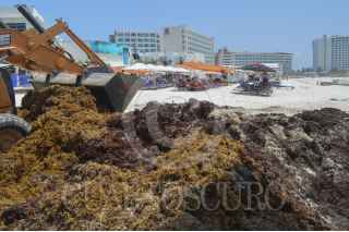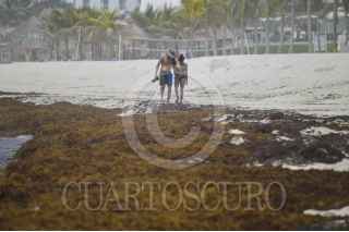 CANCÚN, QUINTANA ROO, 29JULIO2015.- A pesar de la acumulación el sargazo en las costas, turistas vacacionan en las playas de Cancún y la Riviera Maya. Trabajadores laboran el retiro de las algas, aunque este fenómeno no haya afectado la llegada de visitantes. FOTO: ELIZABETH RUIZ /CUARTOSCURO.COM