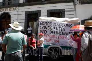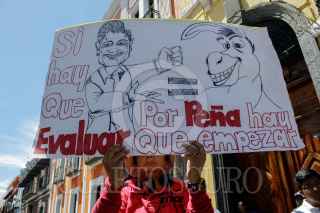 PUEBLA, PUEBLA, Integrantes de la Coordinadora Nacional de Trabajadores de la Educación realizarón una protesta pidiendo la revocación de la Reforma Educativa. FOTO: HILDA RIOS /CUARTOSCURO.COM