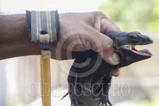 ACAPULCO, GUERRERO, 29JULIO2015.- “El iguanero” se dedica a la caza de esta especie por necesidad, según explica. En su casa, la iguana es el menú principal, aunque entre semana lo combina con frijoles de la olla, plantas silvestres como el chipile y otros animales como el armadillo, tejón, tlacuache, incluso culebras, que su esposa convierte en suculentos manjares para sus dos hijos. A sólo unos minutos del llamado "Paraíso de América", la zona rural de Acapulco es un lugar con alto índice de pobreza. "El Iguanero" vive con su familia en condiciones precarias en la comunidad de Salsipuedes, en la zona de los bienes comunales de Cacahuatepec, pero de ahí se desplaza hacia los alrededores de otros poblados como El Salto, San Isidro Gallinero, Agua Caliente, Garrapatas, entre otras, en busca del sustento diario, armado solamente con su resortera y sus perros que le apoyan en la cacería. Está consicente de que algunas de esas especies están en veda, dice que, “en su condición”, que es la misma que padecen muchas familias de esa región, no le queda de otra, "tenemos que salir a cazar para poder sobrevivir y alimentar a mi familia". FOTO: BERNANDINO HERNÁNDEZ /CUARTOSCURO.COM