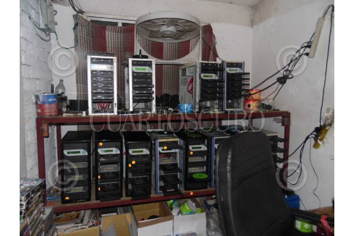MÉXICO, D.F., 29JULIO2015.- La Procuraduría General de la República (PGR) desmanteló cuatro laboratorios para elaborar discos y películas apócrifas, durante un operativo realizado en domicilios ubicados en la colonia Morelos, delegación Cuauhtémoc. La dependencia informó que la diligencia judicial la efectuó personal de la Subprocuraduría Especializada en Investigación de Delitos Federales (SEIDF), al cumplimentar una orden de cateo girada por un juez federal penal. Al dar seguimiento a una averiguación previa por violación a la Ley Federal de Derechos de Autor, en esos lugares se aseguraron más de 46 mil 500 películas, 178 mil portadillas y cuatro mil 700 discos compactos. Además 840 fonogramas falsificados, 417 quemadores, 46 ventiladores de torres para quemar, 27 cerebros y siete aparatos electrónicos, entre otras cosas. FOTO: PGR /CUARTOSCURO.COM