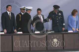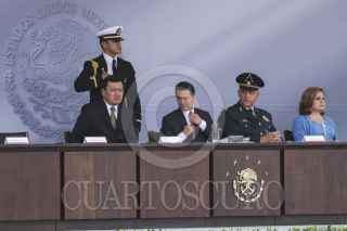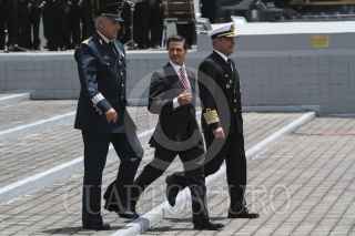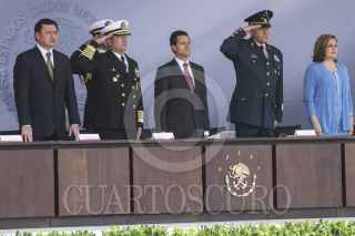 MÉXICO, D.F., 30JULIO2015.- Enrique Peña Nieto, presidente de México, encabezó la ceremonia de entrega de menciones honoríficas a las Unidades de la Armada, Ejército y Fuerza Aérea Mexicanos. En las instalaciones de la Secretaria de Marina se entregaron 25 menciones honoríficas a unidades de la Sedena, Semar y la Fuerza Aérea. Presidieron el evento: Salvador Cienfuegos Zepeda, titular de SEDENA; Vidal Francisco Soberón Sanz, titular de SEMAR; Miguel Ángel Osorio Chong, titular de SEGOB, Arely Gómez, titular de PGR, Monte Alejandro Rubido, comisionado de seguridad nacional y Eugenio Imaz, titular de CISEN. FOTO: ISABEL MATEOS /CUARTOSCURO.COM