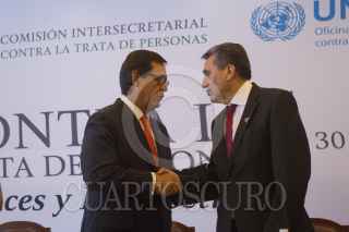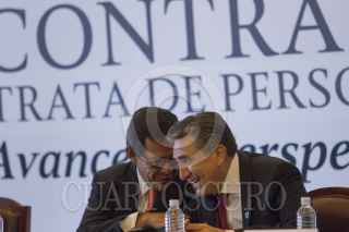 MÉXICO, D.F., 30JULIO2015.- Roberto Campa Cifrián, subsecretario de Derechos Humanos de Gobernación y Luis Raúl González Pérez, presidente de la Comisión Nacional de Derechos Humanos, durante el foro "Contra la Trata de Personas: Avances y Perspectivas", que se celebró en la sede de la cancillería. FOTO: MOISÉS PABLO /CUARTOSCURO.COM