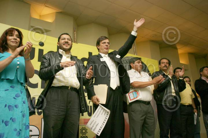 MÉXICO D.F. 18MAYO2006.- El candidato del PRD al gobierno del D.F. Marcelo Ebrard, se despidió de simpatizantes perredístas, al termino de la reunion con locatarios de distintos mercados e integrantes de FMCPA, en el deportivo Coyuya. FOTO. Diego Gallegos/CUARTOSCURO.COM