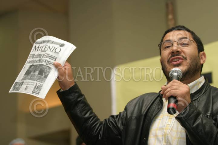 MÉXICO D.F. 18MAYO2006.- El candidato del PRD al gobierno del D.F. Marcelo Ebrard, se despidió de simpatizantes perredístas, al termino de la reunion con locatarios de distintos mercados e integrantes de FMCPA, en el deportivo Coyuya. FOTO. Diego Gallegos/CUARTOSCURO.COM