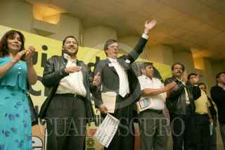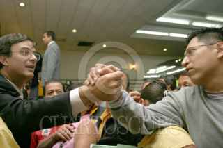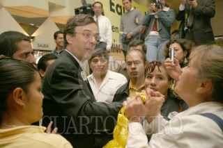 MÉXICO D.F. 18MAYO2006.- El candidato del PRD al gobierno del D.F. Marcelo Ebrard, se despidió de simpatizantes perredístas, al termino de la reunion con locatarios de distintos mercados e integrantes de FMCPA, en el deportivo Coyuya. FOTO. Diego Gallegos/CUARTOSCURO.COM