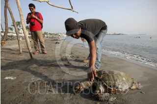 VERACRUZ, VERACRUZ, 31JULIO2015.- Una tortuga carey fue localizada sin vida en las inmediaciones de la plaza de la Soberanía de esta ciudad. Personal del Parque Nacional Sistema Arrecifal Veracruzano (PNSAV) acudió al lugar para levantar los restos del ejemplar y trasladarlos a las instalaciones de la dependencia para tratar de determinar las causas de su muerte. FOTO: FÉLIX MÁRQUEZ /CUARTOSCURO.COM