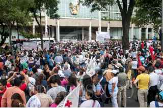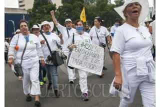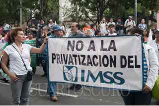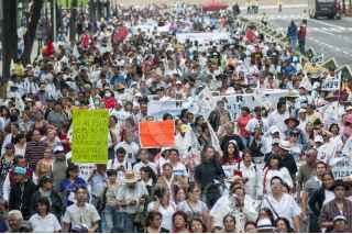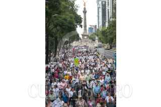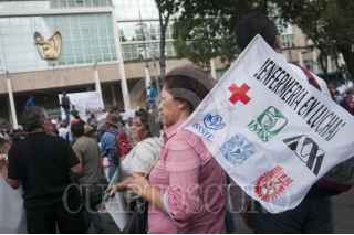 MÉXICO, D.F., 31JULIO2015.- Miles de trabajadores activos, jubilados y pensionadoss del Instituto Mexicano del Seguro Social, realizaron una marcha sobre paseo de la Reforma con rumbo a las afueras de las Instalaciones centrales del IMSS, para exigir la destitución del líder sindical Manuel Vallejo y exigieron que no se realice ninguna modificación de la ley que propone la nueva reforma del IMSS. FOTO: DIEGO SIMÓN SÁNCHEZ /CUARTOSCURO.COM