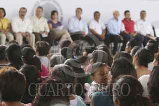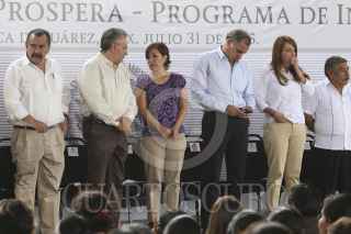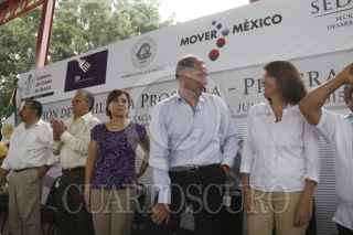 OAXACA, OAXACA, 31JULIO2015.- La secretaria de Desarrollo Social, Rosario Robles realizó una gira de trabajo por la entidad, sin embargo en la agencia municipal de 5 Señores, un grupo de agentes municipales protestaron previo y durante el evento, por lo que la funcionario federal se levantó de su lugar y les pidió bajar sus pancartas, ante la negativa de los manifestantes, bajó del templete y dialogó con ellos. Los agentes se quejaron del delegado de Prospera, Jorge Zárate y del director de Liconsa, Héctor Pablo Ramírez Puga, quienes aseguran están más ocupados en hacer campaña que en brindar los apoyos necesarios. FOTO: ARTURO PÉREZ ALFONSO /CUARTOSCURO.COM