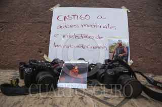 CULIACÁN, SINALOA, 02AGOSTO2015.- Periodistas de diferentes medios de comunicación de Culiacán, se manifestaron en el centro de la ciudad en apoyo para exigir justicia por el asesinato del fotoperiodista Ruben Espinosa y cuatro personas mas el pasado viernes en la ciudad de México. FOTO: RUBEN ESPINOSA /CUARTOSCURO.COM