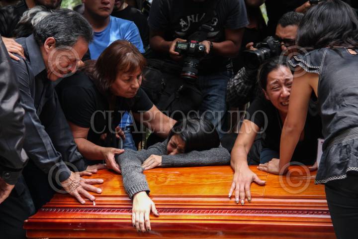 MÉXICO, D.F., 03AGOSTO2015.- Familiares, amigos, compañeros y colegas, asistieron al entierro del fotoperiodista Rubén Espinosa, quien colaboraba para la agencia Cuartoscuro, la revista Proceso y AVC. Era corresponsal en el estado de Veracruz, tomo la decisión de radicar en la capital del país debido al acoso y amenazas que sufría para realizar su trabajo como fotógrafo, lo asesinaron junto con 4 mujeres en un departamento en la colonia Narvarte el pasado viernes 30 de julio. FOTO: ISABEL MATEOS /CUARTOSCURO.COM