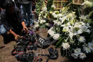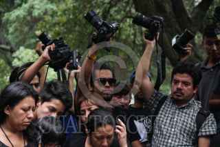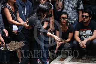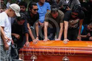 MÉXICO, D.F., 03AGOSTO2015.- Familiares, amigos, compañeros y colegas, asistieron al entierro del fotoperiodista Rubén Espinosa, quien colaboraba para la agencia Cuartoscuro, la revista Proceso y AVC. Era corresponsal en el estado de Veracruz, tomo la decisión de radicar en la capital del país debido al acoso y amenazas que sufría para realizar su trabajo como fotógrafo, lo asesinaron junto con 4 mujeres en un departamento en la colonia Narvarte el pasado viernes 30 de julio. FOTO: ISABEL MATEOS /CUARTOSCURO.COM