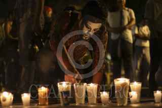 OAXACA, OAXACA, 03AGOSTO2015.- Ciudadnos y un grupo de fotoperiodistas protestaron por el asesinato de Rubén Espinosa, la activista chiapaneca, Nadia Vera, la maquillista, Yesenia Quiroz, la señora Alejandra y la colombiana, Simone. Los manifestantes proyectaron en los muros de la catedral de Oaxaca una imagen del gobernador de Veracruz, Javier Duarte a quien señalan como probable responsable de este crimen. FOTO: ARTURO PÉREZ ALFONSO /CUARTOSCURO.COM