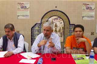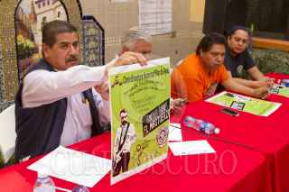 MÉXICO, D.F., 04AGOSTO2015.- Miguel Acundo Gónzalez, líder de la Coordinadora Nacional de Plan Ayala y José Narro Céspedes, líder de la corriente perredista Unidad Democrática Nacional, durante la presentación de la jornada cultural por la dignidad del campo que se realizará el 10 de agosto del presente, en el cual participarán con un concierto Francisco Barrios "El Mastuerzo" y Salario Mínimo. FOTO: MOISÉS PABLO /CUARTOSCURO.COM