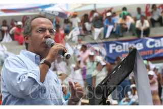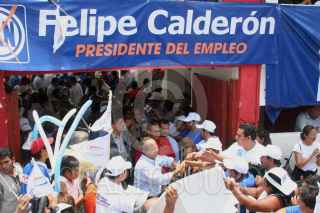 TAPACHULA, CHIAPAS 18MAYO2006.- El candidato del PAN a la Presidencia de la República. Felipe Calderón, realizó un mitin de campaña como parte de su gira por esa entidad en la Plaza de Toros la bien paga. FOTO: Alfredo Guerrero/CUARTOSCURO.COM