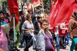 MÉXICO, D.F., 06AGOSTO2015.- Alrededor de 100 personas integrantes del movimiento Antorchista, marcharon sobre avenida de la Reforma. Escoltados por policías únicamente se cerro uno de los carriles de la avenida con dirección al centro. FOTO: ISABEL MATEOS /CUARTOSCURO.COM