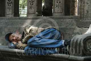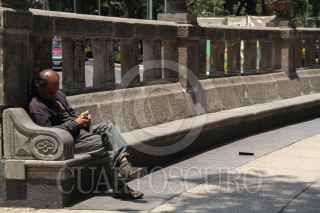 MÉXICO, D.F., 06AGOSTO2015.- Las bancas de la avenida Reforma han sido el lugar favorito de varias personas para tomar un descanso y a veces una siesta, para después continuar con la vida cotidiana. FOTO: ISABEL MATEOS /CUARTOSCURO.COM