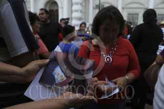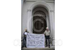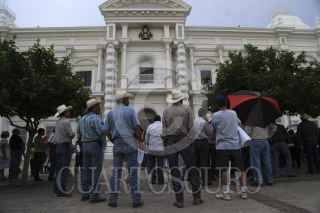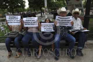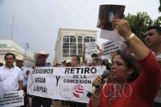 HERMOSILLO, SONORA, 06AGOSTO2015.- Reina Castro muestra unas fotografiás de un afectado en su salud por los desechos tóxicos en el Río Sonora y que fueron vertidos por la minero Grupo México hace casi un año, ahí también denunciaron que no se ha resarcido el daño y los recursos destinados se han desviado, la protesta se realizó frente al Palacio de Gobierno. FOTO: BALEMAR DE LOS LLANOS /CUARTOSCURO.COM