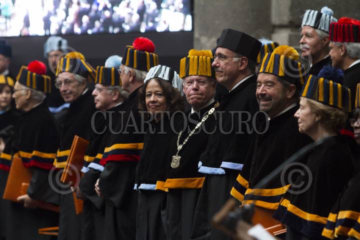 MÉXICO, D.F., 07AGOSTO2015.- José Narro Robles, Rector de la UNAM, encabezó la ceremonia de investiduras de Doctores Honoris Causa 2015, en el Palacio de Minería. Entre los investidos se encuentran Roger Bartha Muria, Juan Ramón de la Fuente y Eduardo Lizalde, entre otros. FOTO: MOISÉS PABLO /CUARTOSCURO.COM