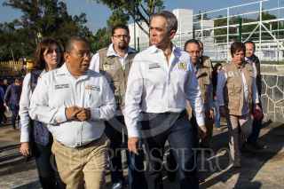 MEXICO, D.F., 08AGOSTO015.- Miguel Ángel Mancera, Jefe de Gobierno de la Ciudad de México encabezó la jornada de mantenimiento de espacio público "Tu ciudad te requiere" en el parque acuático Las Águilas, en la delegación Álvaro Obregón. Estuvo acompañado por el delegado de la demarcación, Joaquín Meléndez Lira, y vecinos de la colonia Las Águilas. FOTO: DAVID POLO /CUARTOSCURO.COM