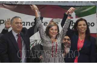 MÉXICO, D.F., 08AGOSTO2015.- Manlio Fabio Beltrones, coordinador de la fracción del PRI en la Cámara de Diputados, saluda a César Camacho Quiroz, presidente nacional del PRI, afuera de la nueva sede de la Confederación Nacional de Organizaciones Populares (CNOP). FOTO: DIEGO SIMÓN SÁNCHEZ /CUARTOSCURO.COM