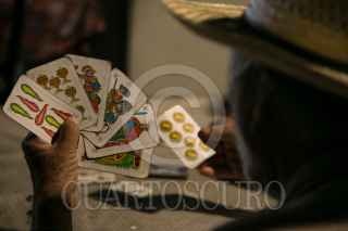 CULIACÁN, SINALOA, 08AGOSTO2015.- Un grupo de músicos norteños mejor conocido como ¨Chirrines¨ se entretienen jugando baraja en el abandonado mercado Izábal, donde ven pasar lentamente la noche en espera de que sean contratados. FOTO: RASHIDE FRIAS /CUARTOSCURO.COM