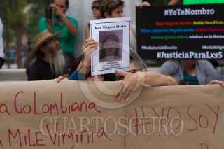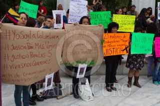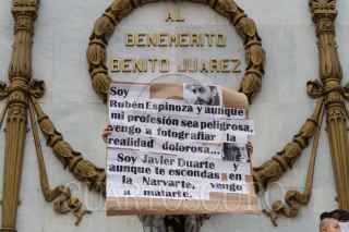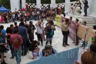 MÉXICO, D.F., 08AGOSTO2015.- La sociedad civil se manifestaron para mostrar su repudió y exigencia de justicia de las víctimas en el asesinato múltiple de la colonia Narvarte, en donde perecieron Rubén Espinosa, fotoperiodista, Nadia Vera, activista y antropóloga, Mile Virginia Martín, joven colombiana y de profesión modelo, Yesenia Quiroz, maquillista de 18 años y Alejandra Negrete, quien trabaja en la casa en el servicio doméstico, asistente al evento lanzaron consignas de justicia y pidieron al gobierno esclarezca este asesinato, el encuentro tuvo lugar en el Hemiciclo a Juárez. FOTO: MOISÉS PABLO /CUARTOSCURO.COM