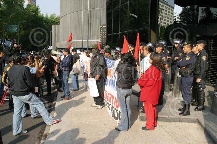 MÉXICO D.F. 19MAYO2006.- Una mujer adepta al CGH, participó en la manifestación en apoyo a los presos políticos de San Salvador Atenco, a las afueras de la Bolsa Mexicana de Valores. FOTO: Diego Gallegos/CUARTOSCURO.COM