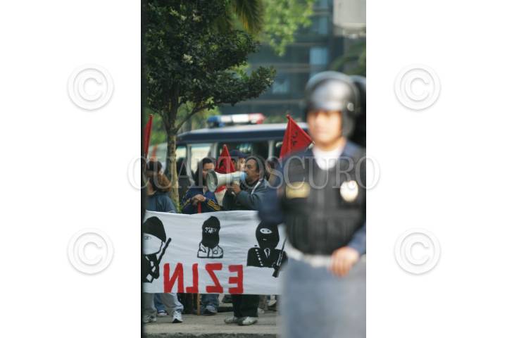 MÉXICO D.F. 19MAYO2006.- Una mujer adepta al CGH, participó en la manifestación en apoyo a los presos políticos de San Salvador Atenco, a las afueras de la Bolsa Mexicana de Valores. FOTO: Diego Gallegos/CUARTOSCURO.COM