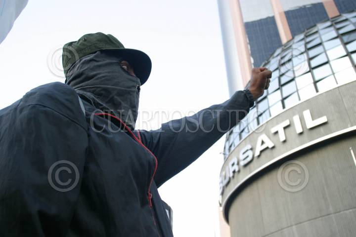 MÉXICO D.F. 19MAYO2006.- Una mujer adepta al CGH, participó en la manifestación en apoyo a los presos políticos de San Salvador Atenco, a las afueras de la Bolsa Mexicana de Valores. FOTO: Diego Gallegos/CUARTOSCURO.COM