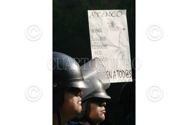MÉXICO D.F. 19MAYO2006.- Una mujer adepta al CGH, participó en la manifestación en apoyo a los presos políticos de San Salvador Atenco, a las afueras de la Bolsa Mexicana de Valores. FOTO: Diego Gallegos/CUARTOSCURO.COM