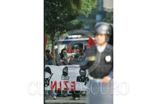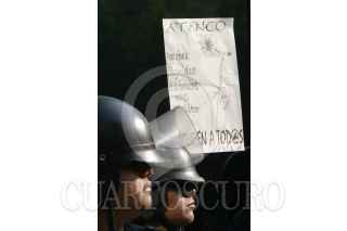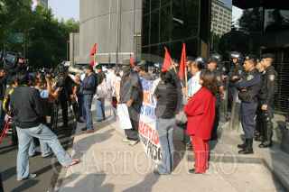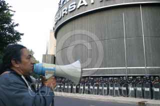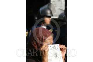 MÉXICO D.F. 19MAYO2006.- Una mujer adepta al CGH, participó en la manifestación en apoyo a los presos políticos de San Salvador Atenco, a las afueras de la Bolsa Mexicana de Valores. FOTO: Diego Gallegos/CUARTOSCURO.COM