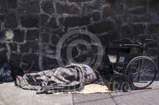 MÉXICO, D.F., 10AGOSTO2015.- Dos personas duermen sobre la banqueta, una de ellas se bajo de su silla de ruedas para tomar un descanso en la zona de San Cosme. FOTO: ENRIQUE ORDÓÑEZ /CUARTOSCURO.COM
