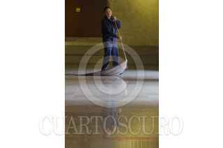 MÉXICO, D.F., 11AGOSTO2015.-Un trabajador de aseo resguarda la brillantez del suelo. Qué tan limpio es el piso de la Suprema Corte de Justicia de la Nación que aparece el reflejo de aquel que cumple con su trabajo cotidiano. FOTO: MARÍA JOSÉ MARTÍNEZ /CUARTOSCURO.COM