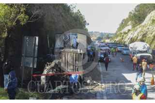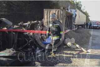 ATIZAPÁN DE ZARAGOZA, EDOMEX, 11AGOSTO2015.- Un tráiler impactó un camión dejando como saldo un chofer muerto. El conductor del tráiler se dio a la fuga, el accidente sucedió en la autopista Chamapa-Lechería en el kilómetro 14-500. FOTO: ARMANDO MONROY /CUARTOSCURO.COM