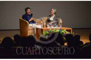 MÉXICO, D.F., 11AGOSTO2015.- Elena Poniatowska, periodista y ganadora del Premio Cervantes 2013 entrevistó en la sala Manuel M. Ponce del Palacio de Bellas Artes a la escritora, Bárbara Jacobs, quien fue reconocida como Protagonista de la Literatura Mexicana por su trayectoria. FOTO: ADOLFO VLADIMIR /CUARTOSCURO.COM