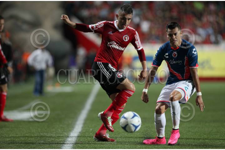 TIJUANA, BAJA CALIFORNIA, 11AGOSTO2015.- Diego Chávez festejando el tercer gol ,durante el partido entre Xoloitzcuintles de Tijuana y los Tiburones Rojos de Veracruz realizado en el Estadio Caliente, dentro de la cuarta jornada correspondiente al torneo de apertura de la Liga MX del futbol mexicano. FOTO: CHRISTIAN SERNA /CUARTOSCURO.COM